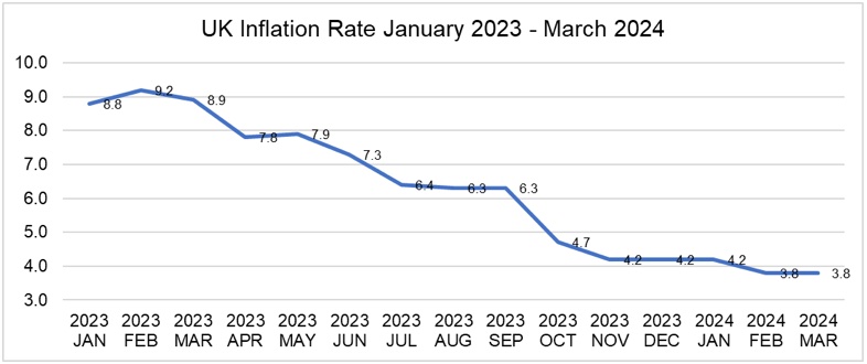 Assessing inflation, the anticipation of global disinflation nearing its end and an easing monetary policy have spurred positive sentiment. This has led to a decrease in worldwide interest rates, a 20% surge in global stocks, and a significant reduction in corporate and sovereign borrowing spreads. Looking at UK inflation for example: